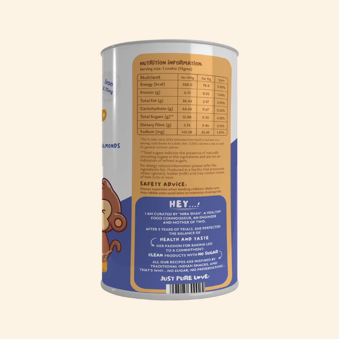 Healthy, wholesome and nutritious cookies made out of oats, whole wheat, semolina, almonds, honey and sulphur free jaggery.