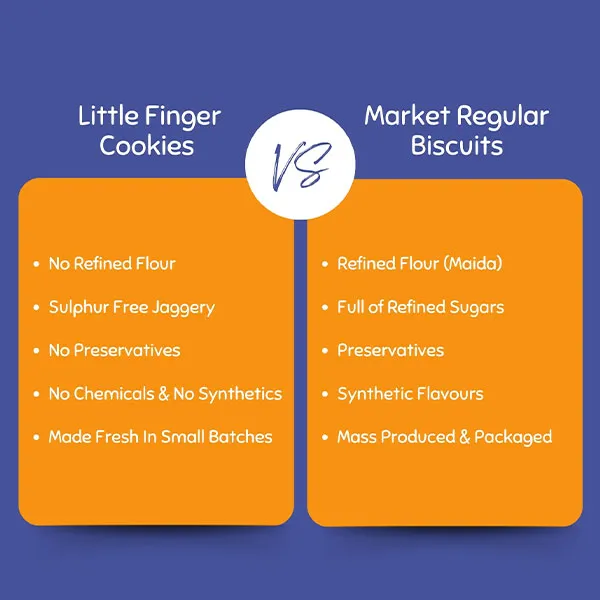 At Little Fingers we prioritise the nutrition of our food products with the use of millets, jaggery and wholesome natural ingredients and aim to offer health and delight in every bite!