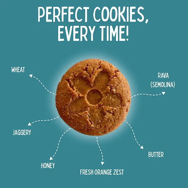 Healthy, wholesome and nutritious cookies made out of oats, whole wheat, semolina, fresh orange zest and sulphur free jaggery.