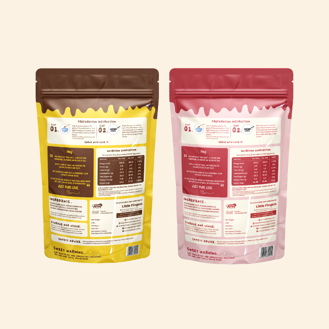 At Little Fingers we prioritise the nutrition of our food products with the use of millets, jaggery and wholesome natural ingredients and aim to offer health and delight in every bite!