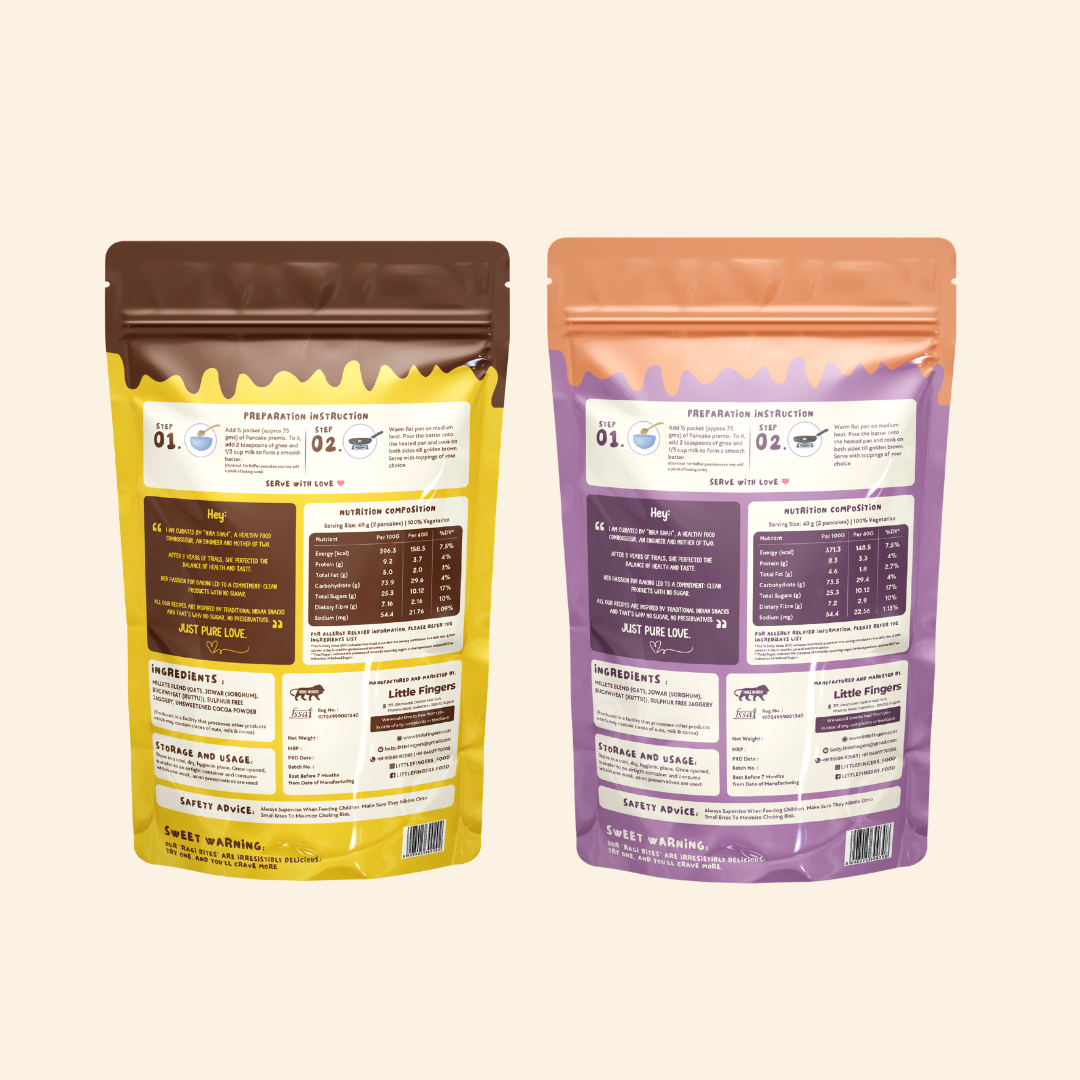 At Little Fingers we prioritise the nutrition of our food products with the use of millets, jaggery and wholesome natural ingredients and aim to offer health and delight in every bite!